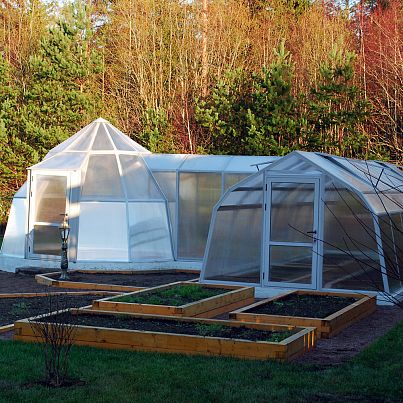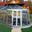 Радиальный торец одновременно позволяет расширить область применения и придает объекту своеобразную дизайнерскую «изюминку». Купив оранжерею с радиальным торцом, вы сможете создать красивый зимний сад, выращивать цветы или использовать постройку как обычную теплицу, но только более уютную.