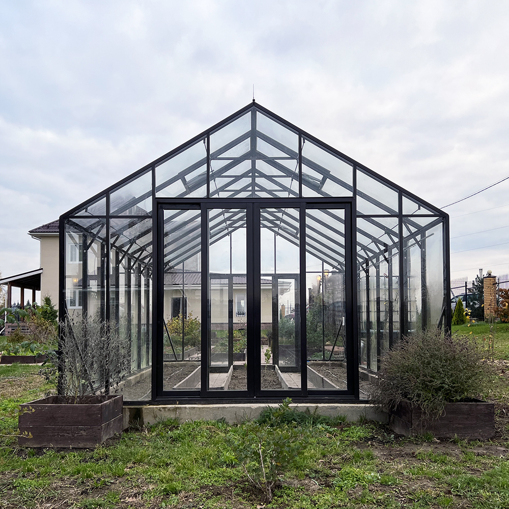 Модель БИОНИКА Оптима с увеличенными боковыми стенками 2035 мм. Теплица укомплектована брусом 100х150 мм, окрашенным в чёрный цвет. В комплекте торцевая раздвижная дверь с увеличенным размером 1840х1800 мм. Теплица готова и может быть отгружена в любой момент.